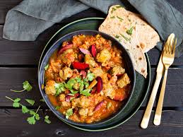 Lammfleisch mit verschiedenen Gemüse und Curry